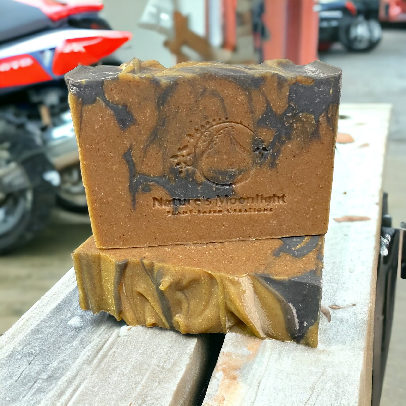 This soap contains fine ground pumice stone and walnut shells which aid in exfoliating dirt and grime from the skin with deep cleansing coconut oil.