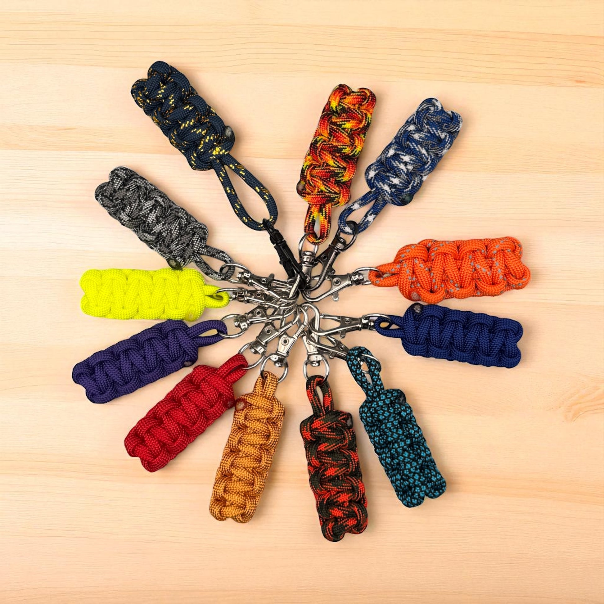 Meet the Paracord Keychain, a compact accessory built for style and practicality. Made with tough, lightweight paracord and finished with a sturdy metal clasp, this keychain keeps your keys secure while adding a pop of color to your everyday carry. Decorate your bag, purse or backpack with your favorite colors!