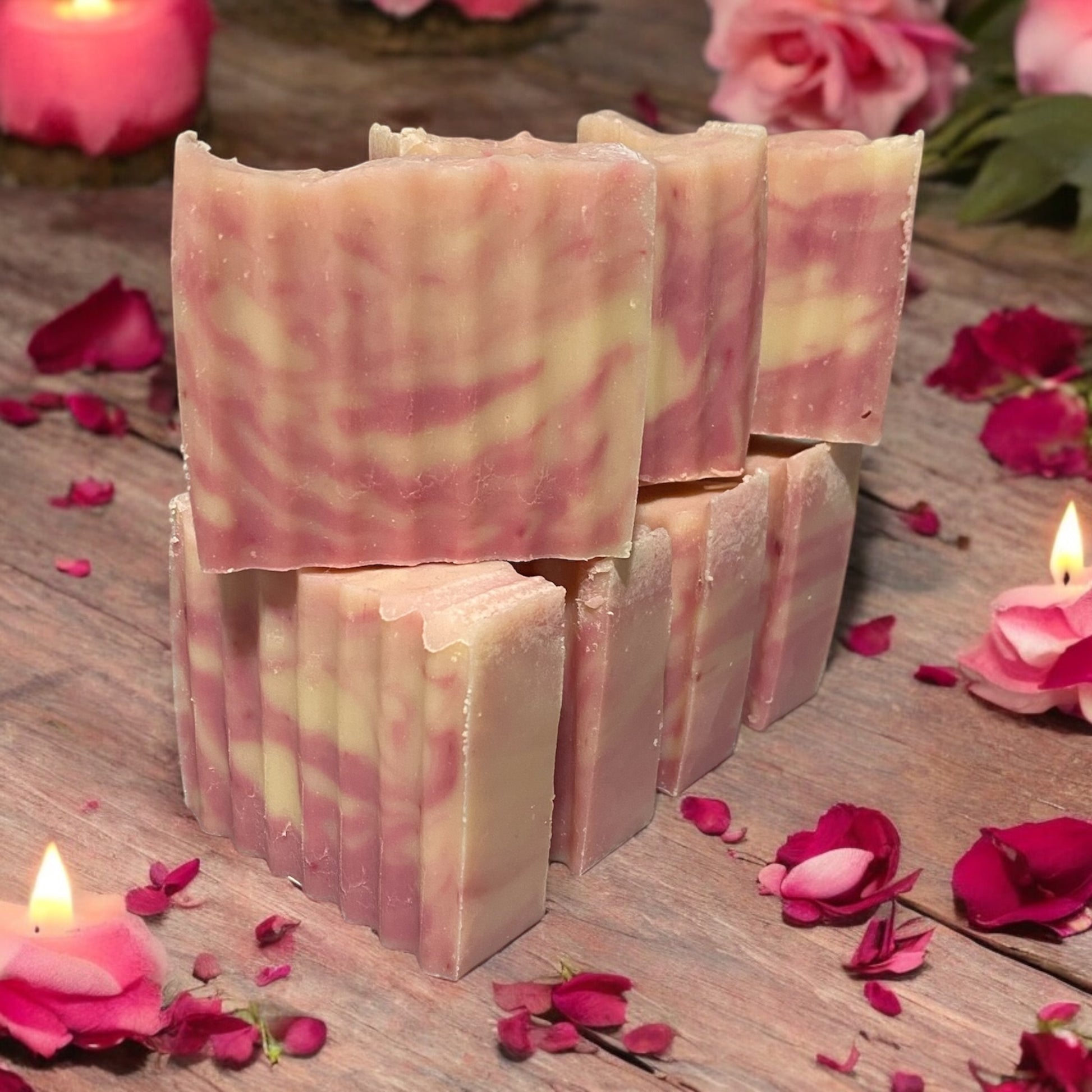 Experience the essence of romance with our Love Letters handmade bar soap, a delightful blend of uplifting and enchanting fragrances.  With vibrant notes of bergamot, orange and grapefruit, complemented by the delicate sweetness of dried rose petals and jasmine, this soap evokes a sense of passion and warmth.  Enriched with creamy coconut milk, nourishing shea butter and rich walnut oil, it provides hydration for your skin, while gentle kaolin clay cleanses and revitalizes.  Let the warm undertones of sandalwood and musk linger on your skin, turning every wash into a luxurious celebration of love.  Embrace the magic of Love Letters today!
